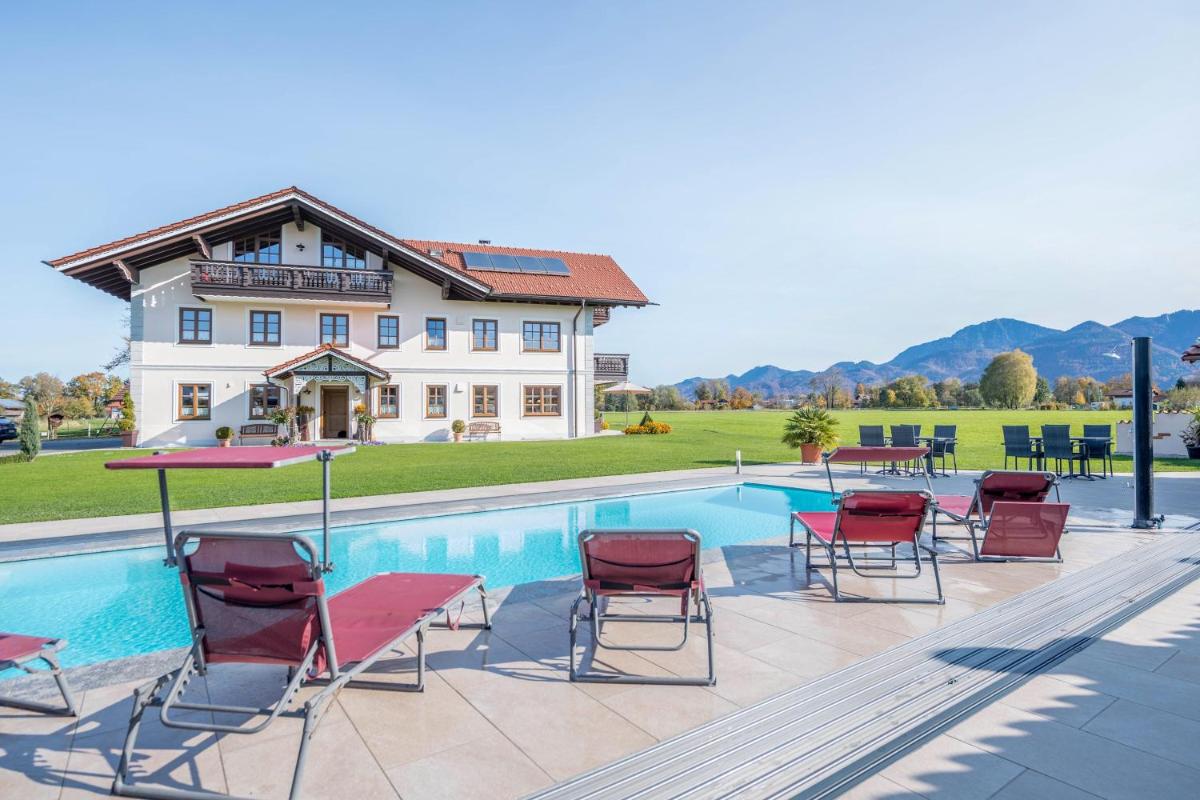 Der 5-Sterne-Ferienwohnung Sissi liegt ungefähr 1,8 km nordwestlich von Übersee Beach und bietet eine luxuriöse Flucht mit Annehmlichkeiten wie einer Sauna und einem Whirlpool, einem beheizten Innenpool, kostenlosen WLAN und sicherem privatem Parken. Das Anwesen bietet eine geräumige Terrasse, die einen Panoramablick mit einem Satellitenfernseher, eine voll ausgestattete Küche bietet, die mit Geschirrspüler, Ofen und Mikrowelle ausgestattet ist, und ein eigenes Badezimmer mit Badewanne und Hadern.