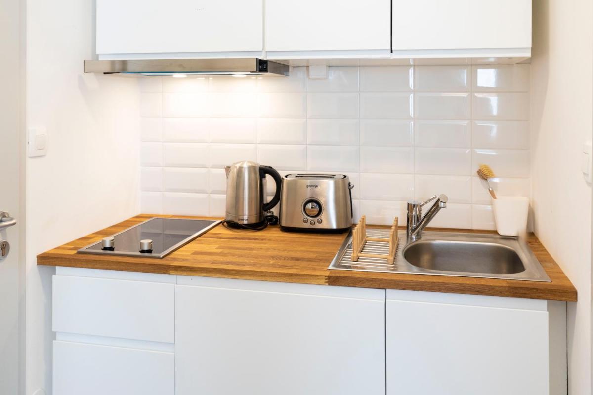 Die klimatisierten Einheiten verfügen über eine voll ausgestattete Küche mit Essbereich, einem Toaster, einer Kaffeemaschine und einem Kühlschrank. Es gibt ein voll ausgestattetes eigenes Badezimmer mit Dusche und einen Haartrockner.