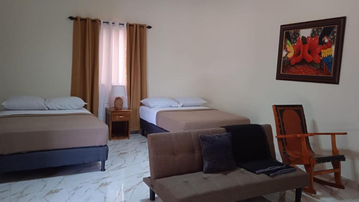 Baruch Tropical Ranch, eingebettet in der üppigen Landschaft von Los Santos, präsentiert eine einladende Oase, in der sich die Gäste in den schönen Gärten entspannen können. Dieses charmante Bed & Breakfast bietet einen ruhigen Rückzugsort mit komfortablen Unterkünften und Annehmlichkeiten, die Ihren Aufenthalt verbessern sollen. KOSTENLOSES WLAN sorgt für eine reibungslose Kommunikation während Ihres gesamten Besuchs, während private Parkplätze für diejenigen, die mit dem Auto ankommen, bequem sind. Jedes Gerät ist mit wesentlichen Funktionen wie Klimaanlage, Flachbildfernsehern und voll funktionsfähigen Badezimmern mit Duschen und kostenlosen Toilettenartikeln ausgestattet. Ein entzückendes Frühstück erwartet Sie jeden Morgen, um sicherzustellen, dass Sie Ihren Tag mit Energie versorgen und bereit sind, die lebendige Umgebung zu erkunden. Dieser idyllische Kurzurlaub liegt nur 16 km vom Flughafen Pedasí vom Flughafen Pedasí entfernt und sorgt für eine ideale Basis für Reisende, die Abenteuer oder Entspannung suchen. Egal, ob Sie eine friedliche Flucht suchen oder die nahe gelegenen Attraktionen erkunden, die Baruch Tropical Ranch verspricht ein unvergessliches Erlebnis voller Ruhe und Komfort.