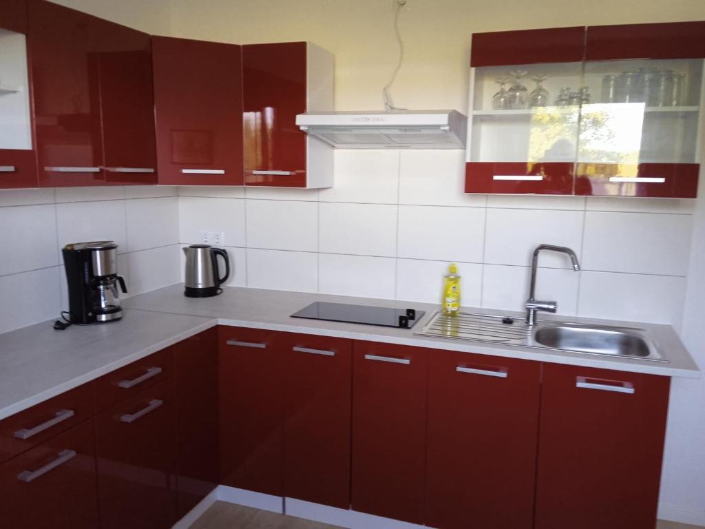 Die Wohnung hatte voll ausgestattete Einrichtungen, darunter Kühlschrank, Heizplatte und andere Geräte.