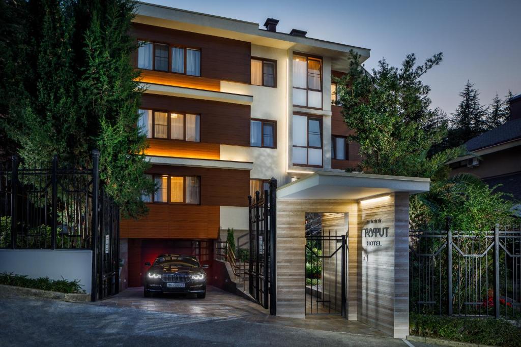 Das Hotel Grafit hat einen Garten, eine Terrasse, ein Restaurant und eine Bar in Sotschi. Mit kostenlosem WLAN bietet dieses 4-Sterne-Hotel eine 24-Stunden-Rezeption. Das Anwesen ist allergiefrei und 1,2 km vom Albatros Beach entfernt.