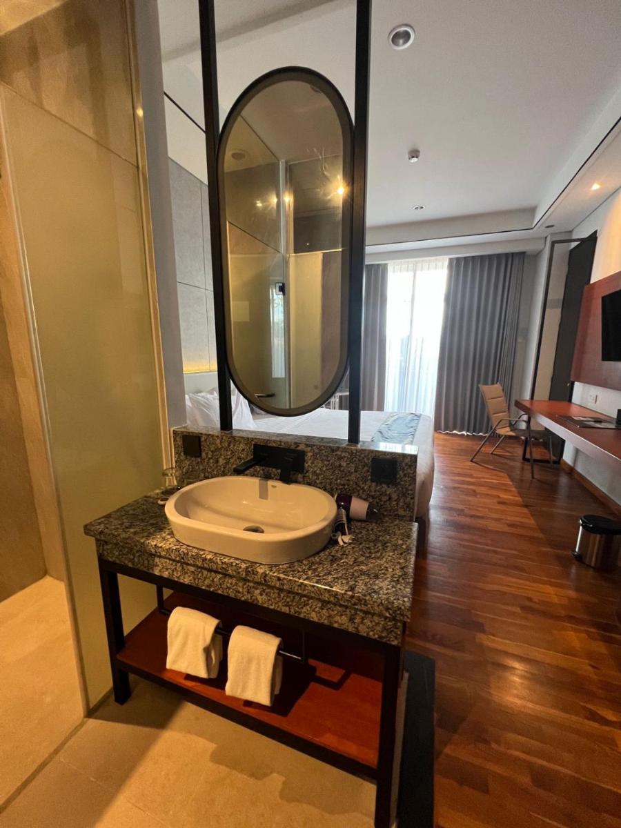 Zimmerstandard hoch, saubere und große Betten, Dusche getrennt von Toilette, Spa, großer Schwimmbad.
