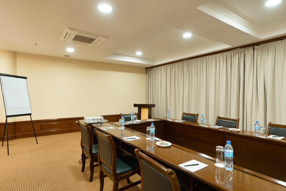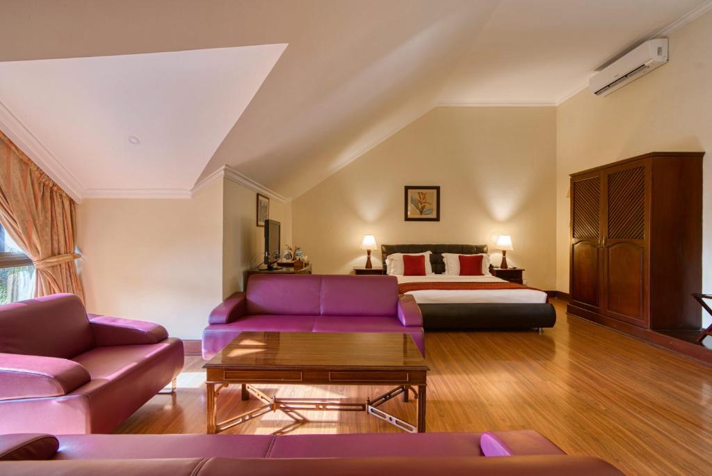 Das Kibo Palace Hotel Arusha, bequem in der Nähe des Stadtzentrums von Arusha gelegen, verfügt über eine idyllische Kulisse mit seinem weitläufigen, angelegten Garten und einem großen Outdoor -Pool. Die Zimmer verfügen über elegante Möbel und moderne Annehmlichkeiten wie Klimaanlage, Mini-Bars, Schreibtische und Satellitenfernseher. Genießen Sie eine Reihe von Essmöglichkeiten, darunter à la carte und Buffet im Restaurant mit Blick auf den Poolbereich, ergänzt durch Cocktails, Getränke und Snacks in der Loungebar. Zur Entspannung können sich die Gäste in die umfassenden Wellnesseinrichtungen des Hotels verwöhnen, darunter ein Fitnesscenter, eine Sauna, ein Dampfbad, Sonnern und ein Massagesalon. Dieser luxuriöse Retreat bietet einen kostenlosen Wi-Fi-Zugang und bietet komfortable Unterkünfte und außergewöhnlichen Service. Damit ist es ideal für Paare, die romantische Kurzurlaube suchen, und Familien, die nach einem unvergesslichen Urlaubserlebnis suchen.