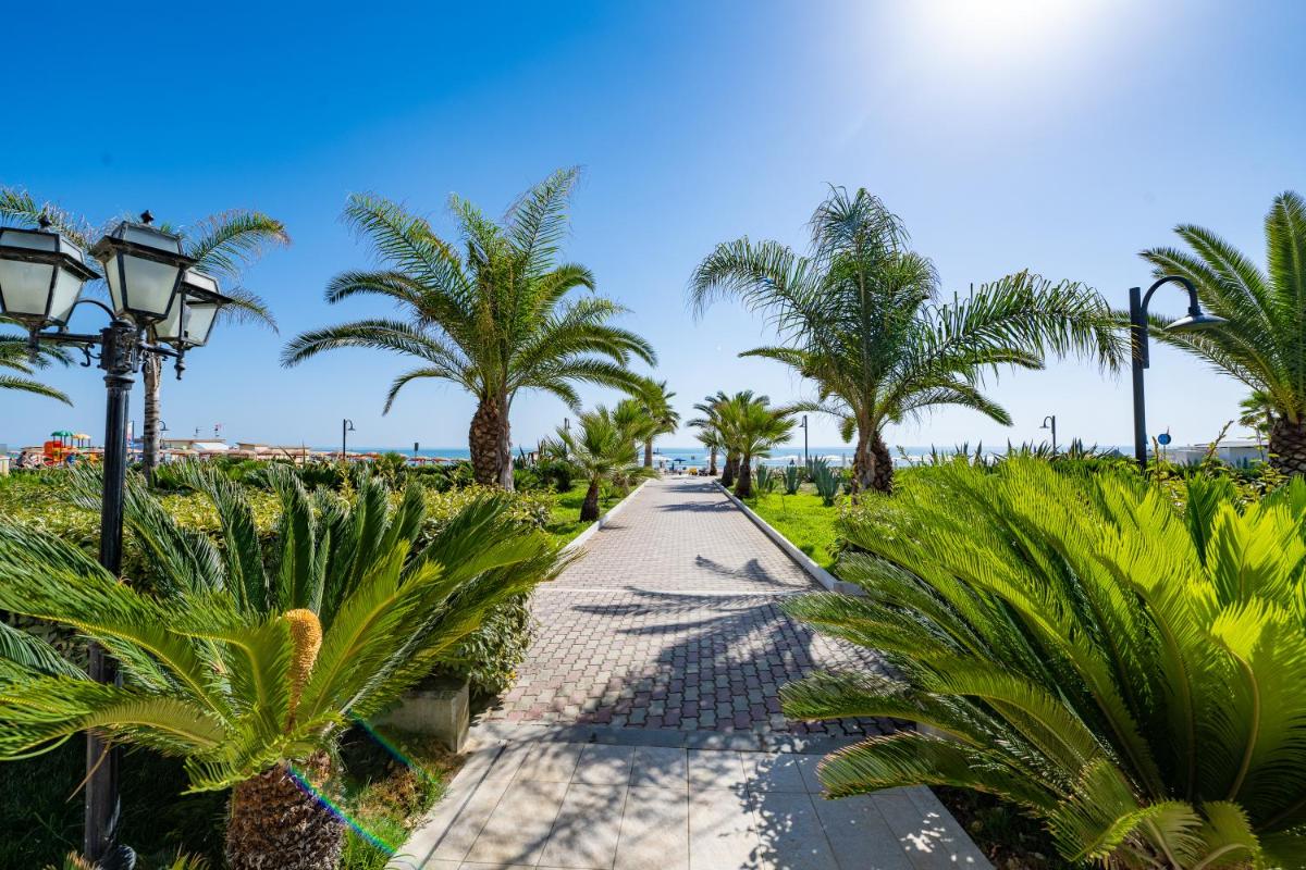 Das Roses Hotel steht stolz an den Ufern von Roseto Degli Abruzzi, deren moderne Architektur nahtlos mit dem üppigen Grün von Oliven und Palmen, die es umgeben, verschmilzt. Diese luxuriöse Einrichtung bietet Besuchern direkten Zugang zu einem privaten Strand und macht jeden Aufenthalt wirklich unvergesslich. Die Gäste können sich im geräumigen Außenpool entspannen und sich entspannen, der auf der neuesten Hydrotherapie-Ausrüstung verfügt und nach Tagen eine erfrischende Flucht bietet, die die atemberaubende Küste erkunden.
