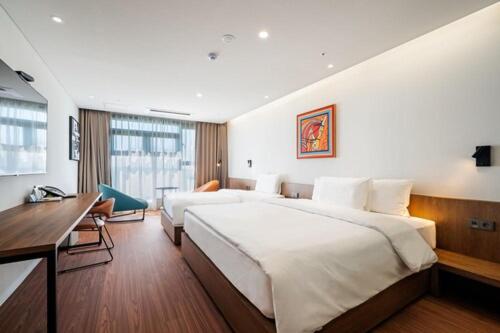 Das Hotel Cielo, das sich in Siheung befindet, bietet komfortable Unterkünfte nur 12 km vom Songdo Convention Center entfernt. Dieses erstklassige Hotel verfügt über eine Terrasse im Freien, ein kostenloses privates Parkplatz und ein einladendes Restaurant. Damit ist es eine ideale Wahl für Reisende, die Bequemlichkeit und Komfort suchen. Das Hotel Cielo liegt ungefähr 17 km vom Bahnhof Incheon entfernt und bietet auch einen einfachen Zugang zu anderen wichtigen Standorten wie dem Gasan Digital Complex und seiner Station, die beide 21 km voneinander entfernt sind. Mit kostenloser Wi-Fi-Berichterstattung können die Gäste während ihres Aufenthalts in Verbindung bleiben. Zu den Zimmereinrichtungen gehören ein Schrank, flachen Bildfernseher und die Ansichten der Stadt gegebenenfalls. Jedes Zimmer ist mit Bettwäsche und Handtüchern ausgestattet, um einen erholsamen Schlaf zu gewährleisten. Paare schätzen besonders die günstige Lage des Hotels und erzielen eine hohe Bewertung von 9,4 von 10 für eine zweiköpfige Reise. Zu den nahe gelegenen Attraktionen gehören Museen wie das Nationalmuseum für koreanische Literatur, das Gasan -Wissenschaftsmuseum und Parks wie Turtles Island, die Besuchern ausreichend Möglichkeiten für kulturelle Erkundungen und Entspannung bieten.