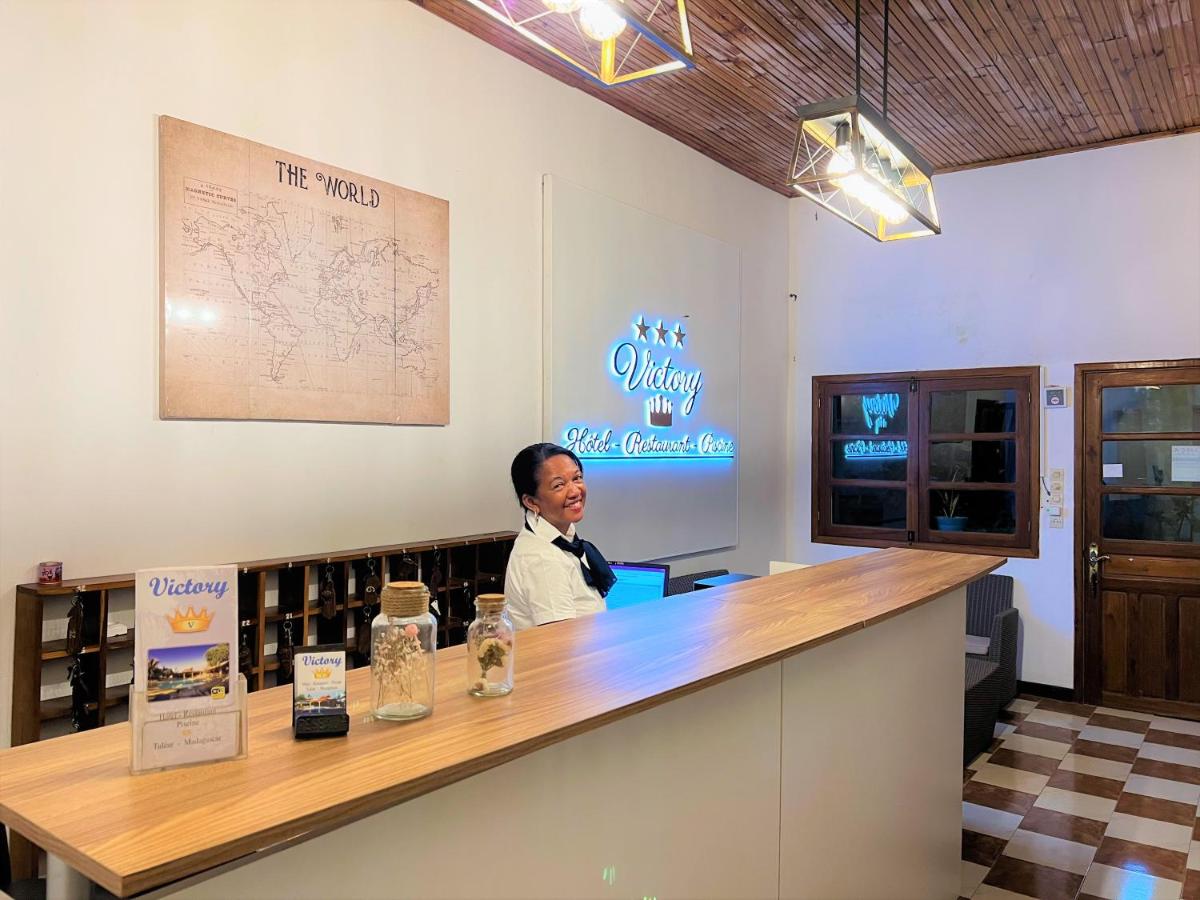 Das Victory Hotel & Restaurant Tulear befindet sich in Toliara, ungefähr 2,9 Kilometer vom Musee Rabesandratana entfernt, und bietet Unterkünfte mit einem Schwimmbad im Freien, kostenlosen privaten Parkplätzen, einem üppigen Garten und einer gemeinsamen Lounge. Diese 3-Sterne-Einrichtung bietet verschiedene Annehmlichkeiten wie Raumservice, eine 24-Stunden-Rezeption und einen kostenlosen Wi-Fi-Zugang in den Räumlichkeiten. Die Gäste können Mahlzeiten genießen, die von ihren eigenen persönlichen Köchen im hauseigenen Restaurant zubereitet werden, das eine Vielzahl von Küchen bietet, darunter Afrikaner, kantonesische, chinesische und französische Optionen.