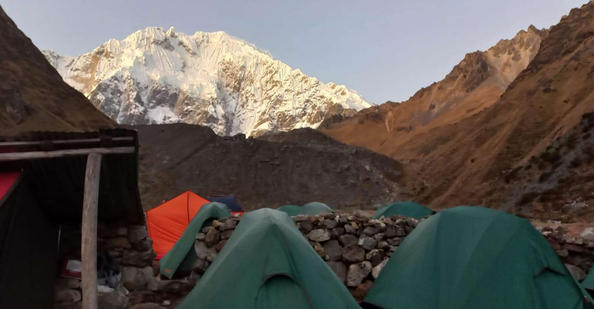 Heute markiert ein Tag mit bemerkenswerten technischen und geografischen Herausforderungen.Während sie in einer Höhe von 4.630 Metern zum Salkantay -Pass aufsteigen und sowohl den östlichen als auch den westlichen Horizont übersehen, werden die Gäste die atemberaubenden Ausblicke und die Befriedigung, in unmittelbarer Nähe eines kolossalen Gletschers zu sein, zu schätzen wissen.Anschließend werden sie zu niedrigeren Höhen absteigen und Veränderungen in Höhe der Höhenzonen, ökologischen Systeme, Flora und Fauna erleben, wenn sie in tropische Regionen übergehen, und schließlich auf ihrem nächsten Campingplatz mit 2.750 Metern über dem Meeresspiegel eintreffen.